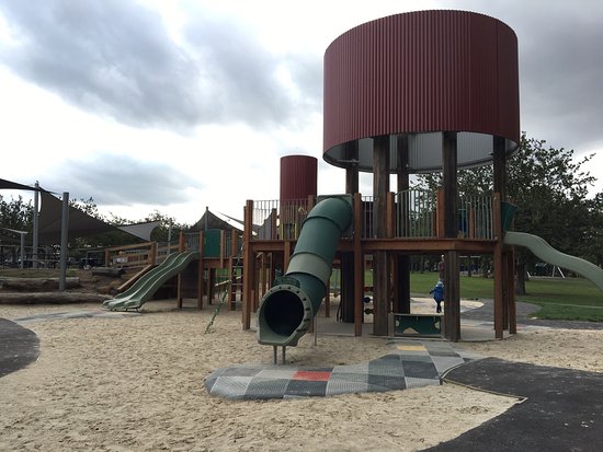 Station Domain Playground in Maryborough features a large shady playspace, multiple play areas suitable for all ages, and an undercover picnic area. The park is beautifully landscaped and also has a paved path around the edge of the play area, which is great for little kids to ride their scooters. Find out more...