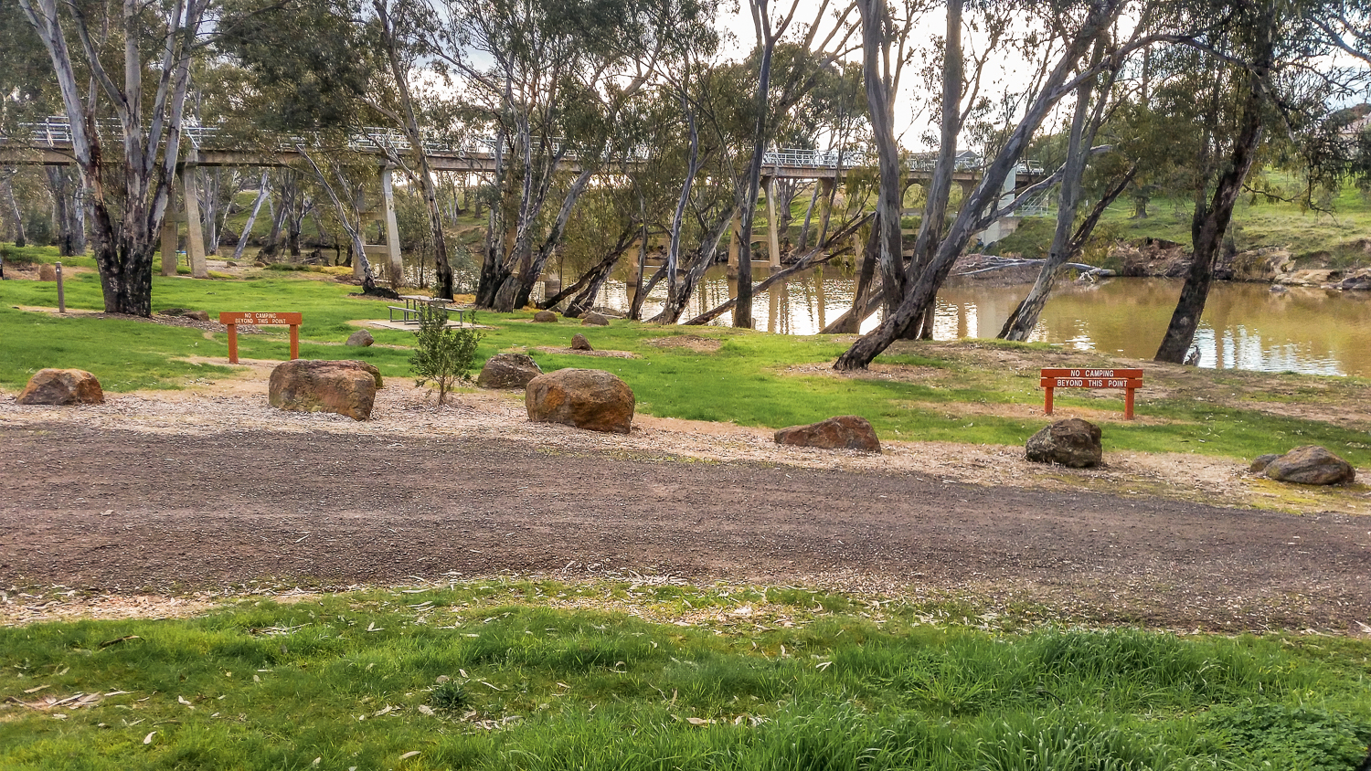The campground is set along a gravel road which travels alongside the beautiful Loddon River.