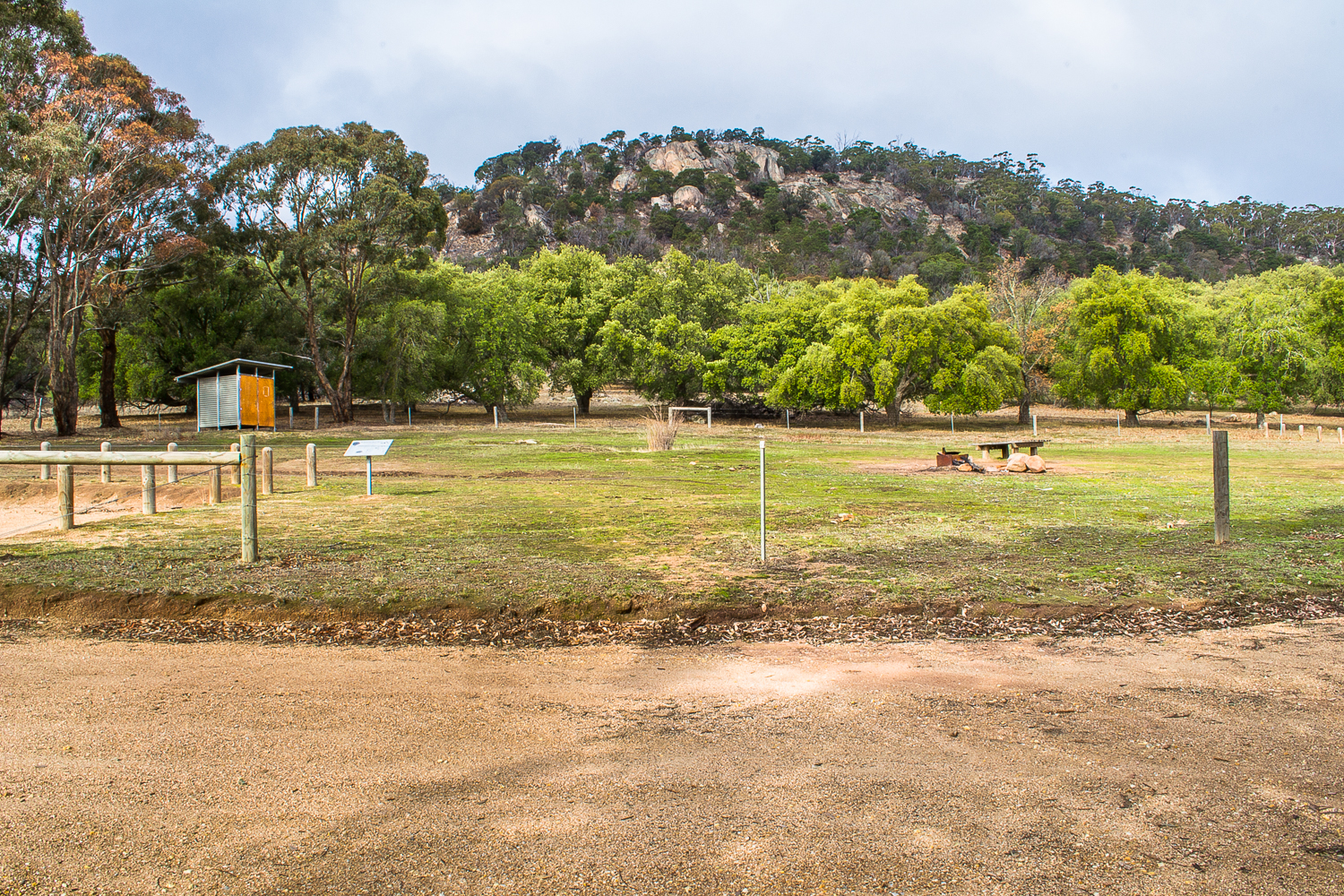 The Manna Gums Campground lies in a peaceful bushland setting within the Mount Beckworth Scenic Reserve.