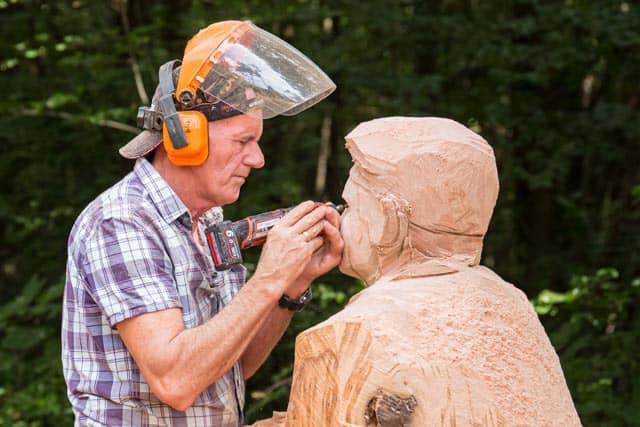 John Brady is a talented chainsaw sculptor who was privately commissioned to create the sixth sculpture in the Chewton Sculpture Trail, that of historian and local treasure Elaine Appleton.
