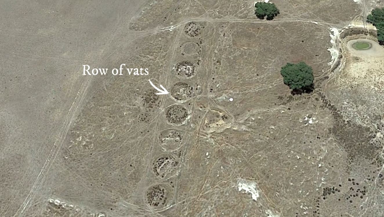 You'll typically see several vats lined up in a row, and the site will often be surrounded by the white remnants of the battery sand which was treated here.