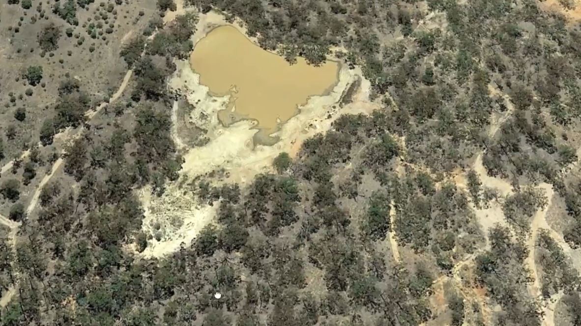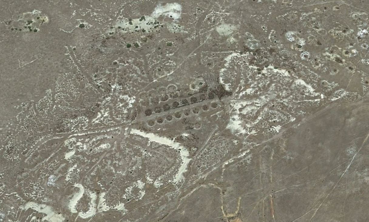The remains of cyanide plants can often be spotted from above by what remains of the vats - whether it is complete tanks remaining at the site, or an impression in the ground where the tanks once stood.