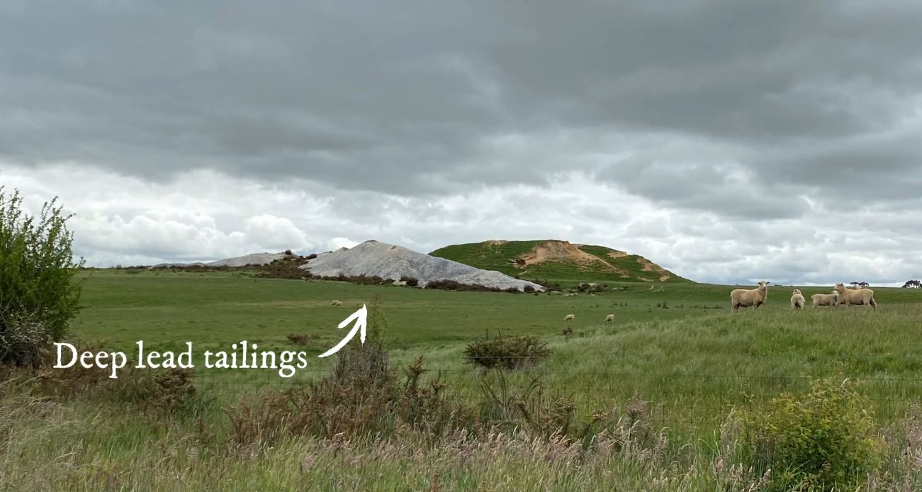 You can often also spot the mine's tailings, which is the waste rock that's discarded after it has been processed for gold.