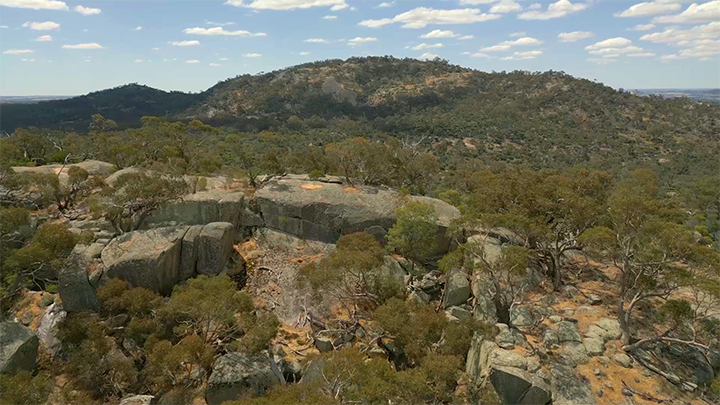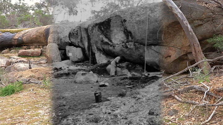 The photos showed the appearance of the granite outcrop around the Macumber brothers mine, but let me tell you, finding a specific rock in a sea of rocks shrouded by trees up in the Kooyoora State Park is no easy task.