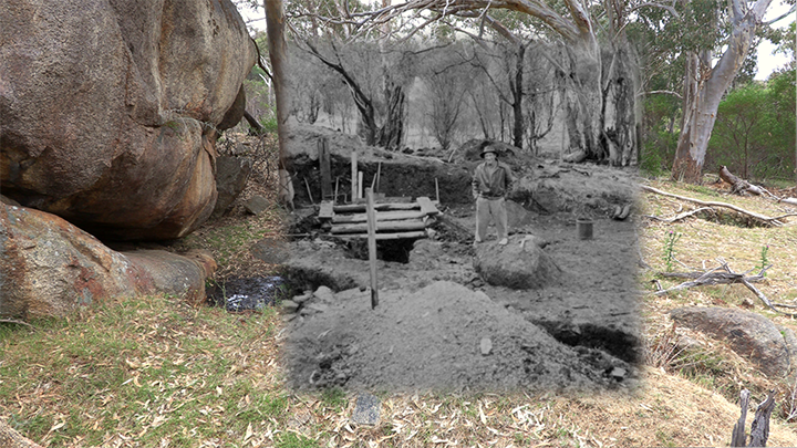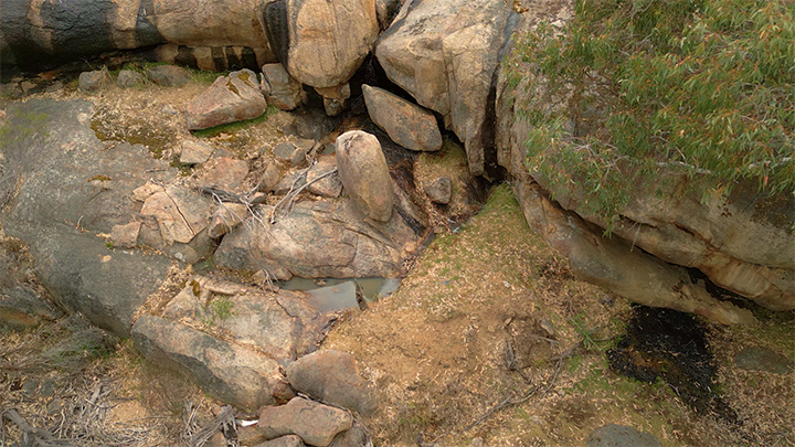 It only took a few days to find what they were looking for at the base of a granite outcrop alongside Blind Creek.