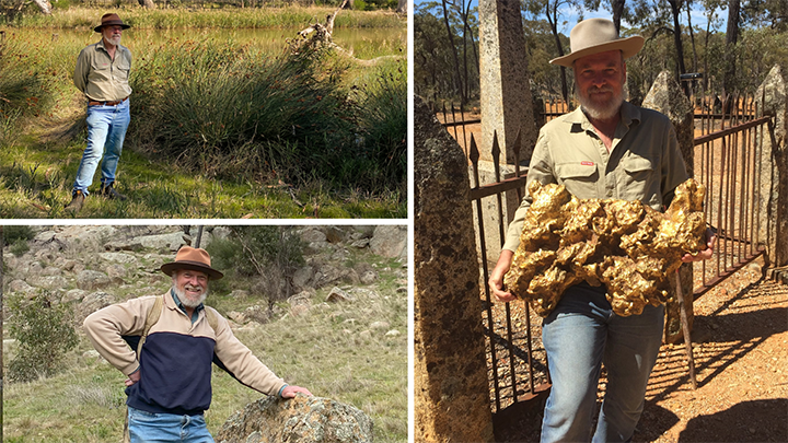 Image - John Tully holding Welcome Stranger gold nugget replica - thanks to Rachel Buckley.