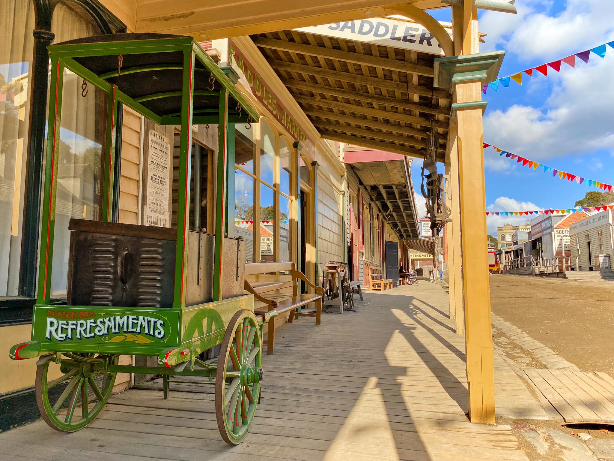 Take a stroll down Main Street and explore the many stores and attractions, including the Criterion Drapery Store, New York Bakery, Jeweller, Sweet Shop, Grocer, Ballarat Times Printer, Hope Bakery, Blacksmith, Gold Bank, Post Office, Apotheceries Hall, Dark Room Photography, and more!