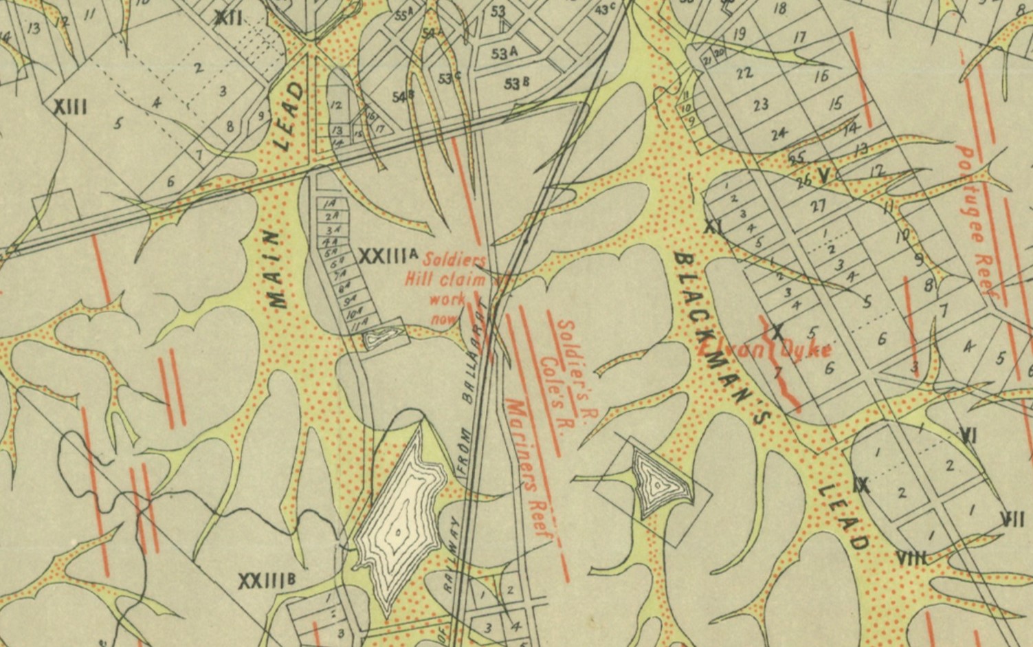 These maps have been selected because they display useful information regarding the location of reefs, leads, diggings, mining operations, and geological features.