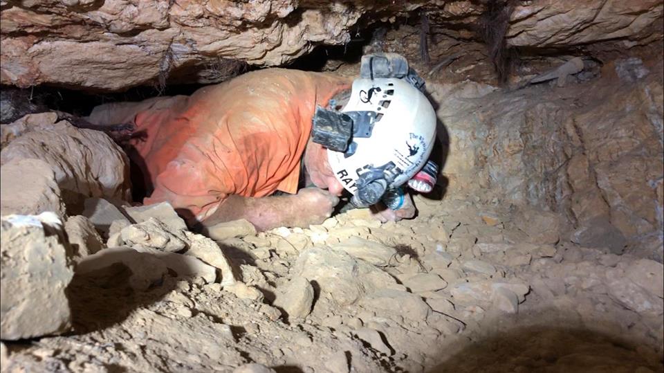 Raymo making his way through a very confined space! Image source: Victorian Historical Mine Shaft Chasers Inc