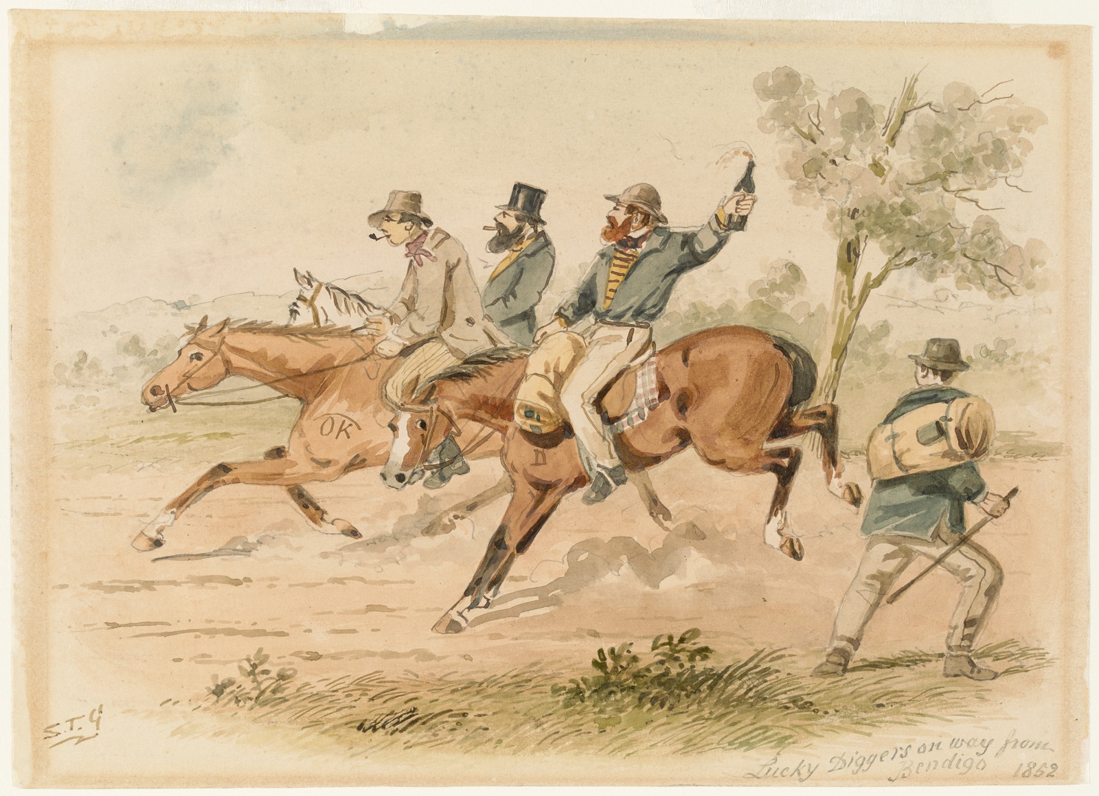 Lucky diggers on way from Bendigo, 1852. S. T. Gill. Image source: State Library Victoria.