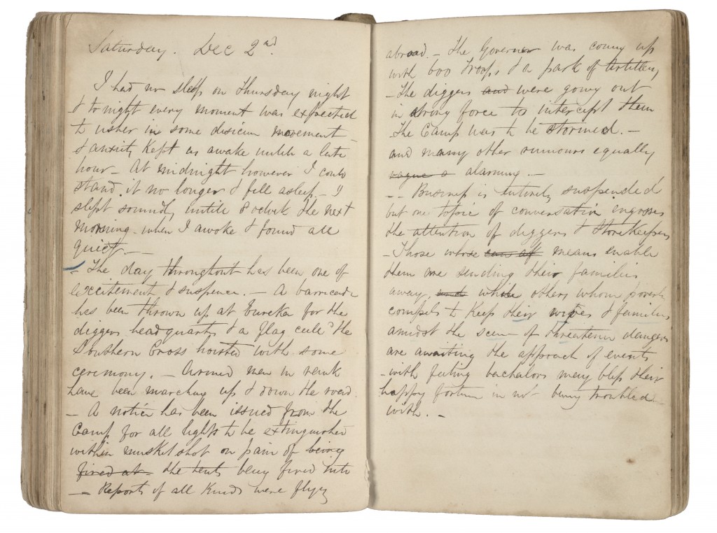 Diary of Charles Evans, 1853-1855. Entry from the day before the Eureka Stockade. Image source: State Library Victoria.